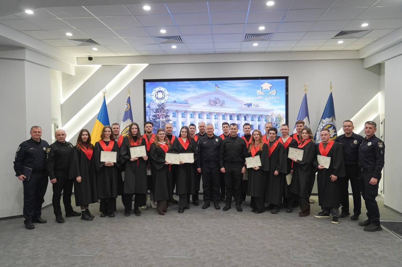 Навчання під час війни вимагало не лише витримки та самодисципліни, а й сили духу, готовності до самопожертви. І я гордий тим, що ми разом з вами пройшли цей нелегкий етап». Ректор подякував керівництву інститутів і науково-педагогічному колективу за професіоналізм і відданість справі, наголосивши, що на випускників чекає відповідальний період служби в умовах воєнного стану. Випускники експертно-криміналістичного інституту працюватимуть у підрозділах Експертної служби МВС України, а представники інститутів поліцейської діяльності та права і психології — у правоохоронних, судових органах, юридичній сфері.